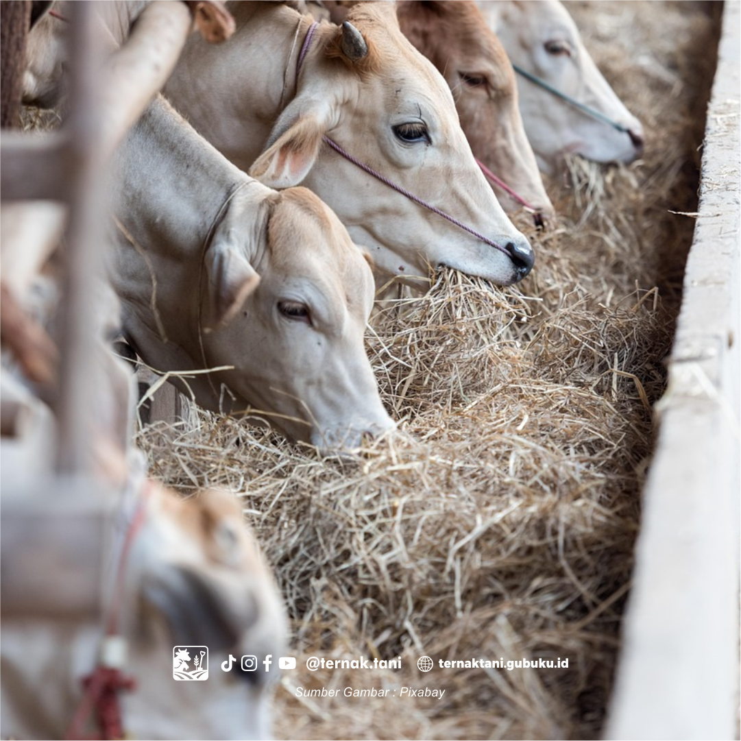 Untuk meningkatkan nafsu makan (palatabilitas), kamu bisa menambahkan molases (tetes tebu) ke dalam pakan. Jika perlu, berikan juga vitamin dan mineral untuk mendukung metabolisme dan sistem imun sapi.